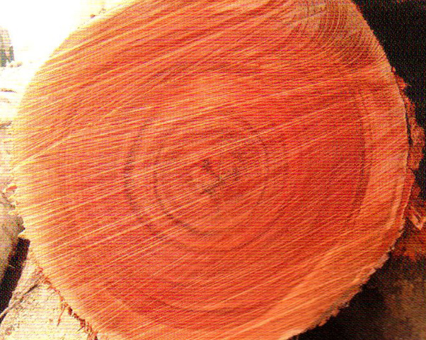 心邊材區(qū)別略明顯。心材深紅褐色至暗紅褐色略帶紫、具黑色細(xì)條紋,久則成銹褐色。邊材色稍淺、生長輪不明顯。